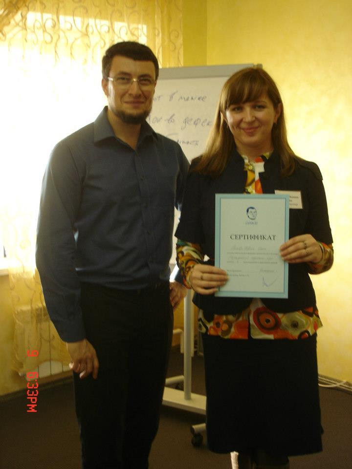 «Большое спасибо тренеру Инне Поповой-Левиной за легкость в подаче информации, за позитив, за энергию, которую дает тренинг. Информация, полученная на тренинге – это готовая инструкция ведения успешных переговоров»